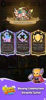 Team Building: Level up and evolve your heroes. Break their limits and unlock countless strategic possibilities. Tower Challenge: Climb higher for greater rewards and tougher enemies! An addictive test of strategy and persistence. 1v1 Real-Time PvP: Compete with players worldwide. Outsmart them in intense tactical duels and climb the ranks! Boss Fights: Assemble your best lineup and blessings to take down bosses and earn rare loot! Why Choose Bam Bam Squad? Simple controls – easy to start, hard to put down Deep blend of roguelike and auto-chess gameplay Dozens of unique heroes to collect and upgrade Eye-catching 3D visuals and spectacular effects Download Bam Bam Squad now and begin your strategic journey. Your destiny awaits – join the battle today!