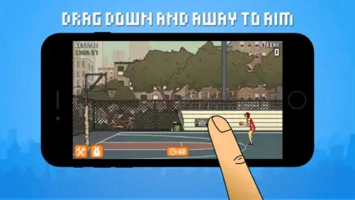 2. Drag your finger down and away from the hoop to begin your shot and determine your shot angle