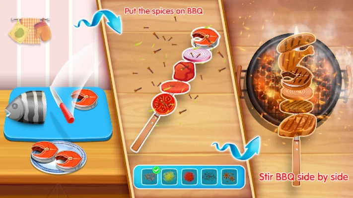 Barbecue restaurant chef games let you fire up the grill, hear the sizzle, and get ready to embark on a mouthwatering journey as a BBQ grill master in a kebab simulator food chef game. Whether you're a seasoned pro or a novice cook, this BBQ grill cooking game is designed to satisfy your craving for delicious BBQ recipes of sushi restaurant story bbq games.
