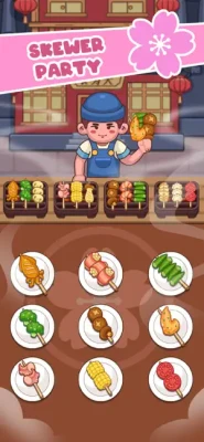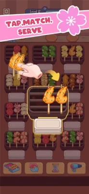 Drag skewers around the board. Match three of the same kind on one plate to collect them. Clear all skewers to win the level -simple but addictive!