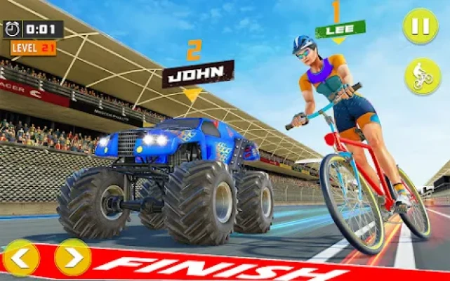 Second mode is MULTIPLAYER RACING where you play against bicycle riders in circuit race. Each mode is further divided into sub modes in which you have to face the different conditions of BMX racing in different types of tracks and environments to prove yourself an unbeaten BMX bicycle rider. In traffic racing mode, test your fastest driving skills of realistic BMX bikes among heavy city traffic. Try to travel long distance in the city to become the champion cycle rider of traffic racing games 2021. 🏆 Multiplayer racing mode divided into circuit mode, elimination race, time trial mode, knockout and checkpoint survival.