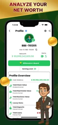 Earn rewards with the streak system and gain valuable insights into how finances and businesses work, all while having fun. Why You’ll Love Billionaire Business Empire? - Realistic Business Strategy: Trade stocks, invest in properties, manage banks, and run companies. - Diverse Investments: Unlock multiple industries like hotels, shipping, factories, and sports clubs. - Economic Challenges: Face real-world scenarios like global events and market fluctuations. - Luxury Lifestyle: Earn and collect rare items, yachts, luxury cars, private jets, and more. - Social Features: Help friends, pay off debts, and earn bonuses while climbing the leaderboard. - Boost Your Progress: You can now buy gems to level up faster and unlock exclusive rewards. What’s New in Our Money Game? - Updated user interface for a smoother experience - You can now buy gems to boost your progress - Guest users can log in using their email - New streak rewards: Get gems with each streak - Claim taxes and unlock new gifts as you level up - Improved notifications and performance fixes Core Features: - Realistic economic simulation - Stunning visuals & immersive design - Daily streak rewards to boost your progress - Social gameplay: help friends & earn bonuses - Strategic decision-making with real-world challenges In Billionaire Business Empire, every decision matters. Begin with a single business and expand into multiple industries, including factories, hotels, taxi services, shipping, and sports clubs. Build the ultimate business management strategy, overcome unique challenges, and watch your wealth skyrocket in this exciting empire-building journey. Disclaimer: This money game is a virtual simulation for entertainment purposes only. The gameplay involves fictional features like stock trading, real estate investments, and corporate management, without real monetary transactions. Download Billionaire Business Empire today and prove your skills as the ultimate money tycoon through our clicker money game.