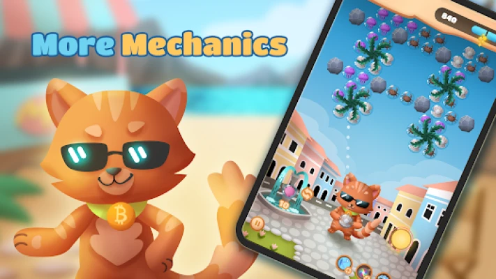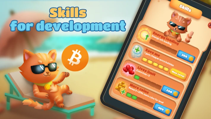 Shoot your bubble creature towards other bubbles that match your creature until the entire level is solved. After completing each level, you’ll be rewarded for your progress with treasure - coins and tickets - which can be redeemed for skills, powerups, or daily bitcoin drawing entries!