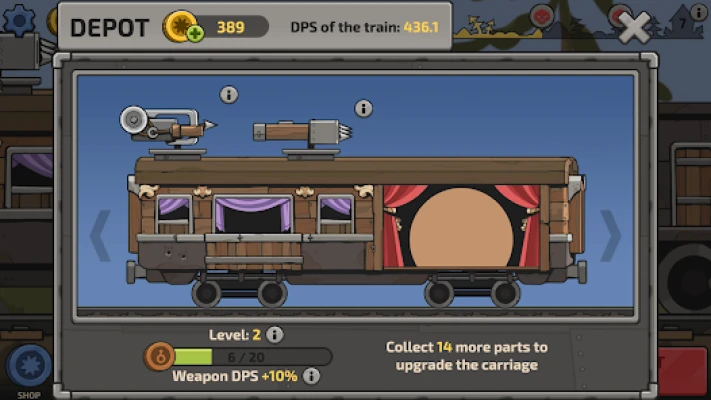 You need weapons to defend against the large amount of monsters you'll meet on your way. The battles are automatic. You have 30 seconds to eliminate a squad of monsters. Dancers give performances in towns and get rewards including details for the train cars. With details you can buy new train cars and improve the current ones.