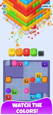 The goal is simple: Send the cubes into the matching colored holes, clear the board, and move on to the next level!