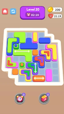 In Block Color Match, blocks of various shapes and multiple colors are distributed in the square area in the center of the screen. Players need to move the blocks skillfully so that two blocks with the same outermost color touch each other, which can eliminate the outermost color and reveal the inner color. Repeat this operation until all blocks are eliminated and the goal of passing the level is achieved. The game process is full of strategy and fun, and it is a great choice for relaxation.