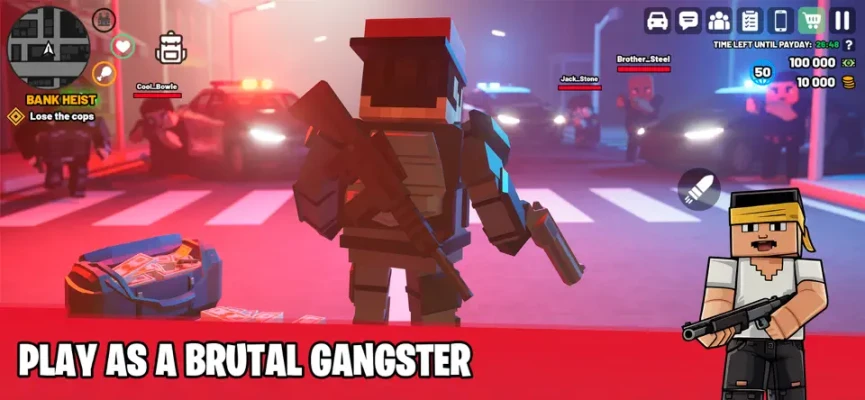 Choose your role in an online MMORPG and become whoever you want — your criminal story begins now! Massively Multiplayer Mode Dive into a huge world with thousands of players in real time. Join over 1 million players worldwide! Create your gang, enter factions, or compete with rivals in shootouts and robberies, heists. Play solo or with friends — enjoy complete freedom: build an empire, join gang wars, protect your turf, become a cop, plan heists, or master street driving. Explore RP scenarios from daring robberies to intense criminal wars. In BLOCK CRIME MAFIA: Online RP, freedom knows no limits: — Team up for joint raids and big-time crimes — Craft items, trade, and sell on the black market — Create your own gang and fight for control over hoods Unlimited Sandbox Freedom Explore, build, and live your own virtual life. Want to be a cop, businessman, builder, or mafia boss? It’s all up to you — no story restrictions. Join factions or compete for unique rewards. Dive into a living community with rankings and hierarchies. Chat with players and grow your RP skills together in the world of crime online games. Game Features — Open World: Explore a highly detailed interactive city. Neon-lit streets, luxury hotels, and poverty-stricken ghettos — a world of contrast. — Roleplay Sandbox: Become a racer, criminal, courier, cop, or businessman. Make money, start your own business, and shape your RP destiny. — Massive Multiplayer: Play in real time with thousands of players around the world. — Gangster Life & RP: Plan heists, build legal businesses, own gas stations, stores, and tuning shops. Complete missions and become king of Los Palms. — Car Simulator & Racing: 100+ vehicles to drive, tune, and customize. Choose body kits, wheels, spoilers, and liveries. Upgrade engines and transmissions, perform stunts, and earn drift points. Try the new DRIFT mode. BLOCK CRIME MAFIA: Online RP combines the freedom of a sandbox with the thrill of online RPG. Want to shoot, drive, build your empire, or just hang out with players? It’s all here. BLOCK CRIME is your world. Live the city roleplay life. Thousands of players await you in the ultimate crime-driving RPG simulator. Download for free and start your rise in the world of online criminal sandbox RP today!