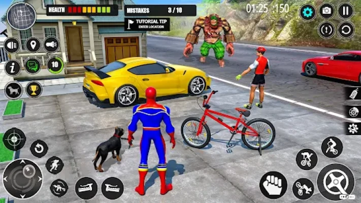 All buttons are self-explanatory; the BMX cycle can be ridden right away with the arrows on screen and direction arrows are there for directions for Crazy BMX Cycle Racing Game 3d