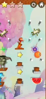Bounce or swing from one object to the other and activate some of the special objects to help Bob Ball reach his goal and eat the water melon. To start move the ball with your finger to the right place and let him fall into the labyrinth.