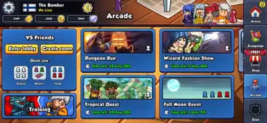 - Two weekly events with exciting gimmicks, fascinating maps and awesome rewards! This is how you gain gold coins, gems, cards and new accessories for your Bomber!