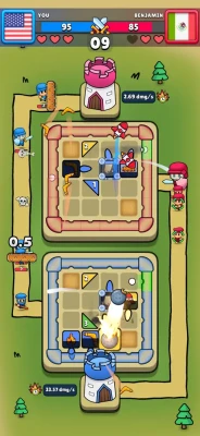 Master the art of bouncing as you set off chain reactions—lasers, explosives, turrets, and more—all while managing cooldowns and adapting your strategy in real time. Can you outthink your opponent and claim victory in this high-energy battle of precision and tactics? Strategic Bouncing Warfare Guide the Ball, Control the Battle – Position bouncers to redirect the ball toward key attack zones. Trigger Weapons Smartly – Each weapon has unique timing, effects, and strategic advantages. Attack and Defend Simultaneously – Balance offense and defense as you send attacks while blocking enemy shots. Adapt to Chaos – Predict enemy moves, counter their strategies, and optimize your setup in real time. Game Features Grid-Based Tactical Combat – Plan your layout and outmaneuver your opponent. Diverse Arsenal – Deploy turrets, lasers, explosive traps, and more. Physics-Driven Strategy – Every bounce reshapes the battlefield, creating unexpected plays. Real-Time PvP Battles – Outsmart human opponents in intense 1v1 or multiplayer showdowns. Upgrade and Customize – Unlock new weapons, bouncers, and strategic perks to gain the upper hand. Why You’ll Love It If you enjoy tower defense, physics puzzles, and mind games with real players, Bounce Battle delivers a fresh and exhilarating multiplayer experience. Experiment with new strategies, refine your bouncer placements, and prove you're the ultimate bounce master. Do you have what it takes to outbounce and outplay the competition?