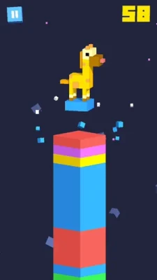 Tap the screen to shift the stack of blocks until the top block is the same color as your bouncing character's block—the number of blocks you shift through is your score.