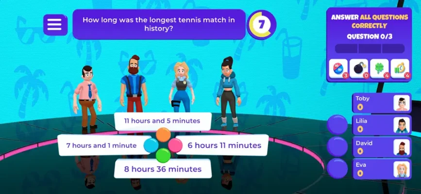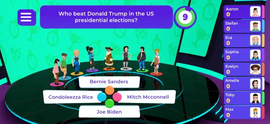 Answering Questions: Questions appear on the screen with multiple-choice answers. Players must select the correct option as quickly as possible.
