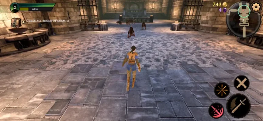 Combat: Move through various environments (forests, outskirts) and use real-time attacks to defeat enemies.