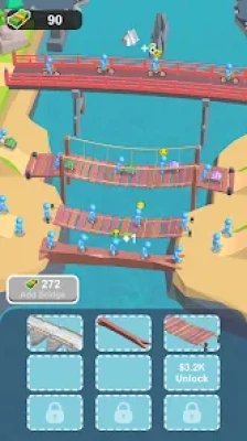 As people and vehicles cross your bridges, they generate income for you. The higher the level of the bridge, the greater the earnings from the passing traffic. Use your earnings to purchase additional low-level bridges and continue merging them to unlock more advanced structures.