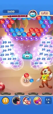 Go for the Roots: Aim for the bubbles at the top of a cluster; popping them will drop all the bubbles attached underneath.