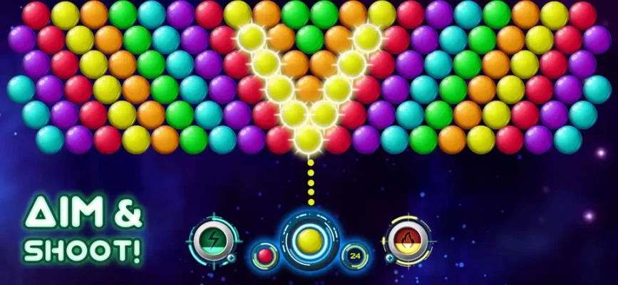 - Drop 10 bubbles in a single shot to get a bomb that will burst the surrounding bubbles.
