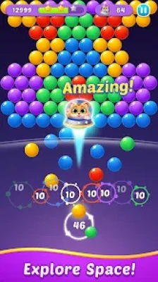 Bubble Gem Pop is a simple and relaxing bubble game with several innovations in addition to the classic gameplay. Discover the ultimate bubble-popping fun in this exciting and romantic bubble-pop adventure. You can help the cute Mars cat fly to space and collect rainbow gems by shooting bubbles to level up and win.