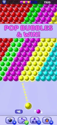 Enjoy the old classic game mode. Match 3 bubbles to blast them away, and clear the board, complete the missions and win coins & awesome rewards. Tap on the screen to drag the laser aim and lift it to take a shot. Shoot and pop all the colored balls in the best fun & free game, aim carefully and match same-colored bubbles to reach the target! Work your way through all the different challenges and puzzles, solve the brain teasers and win levels.