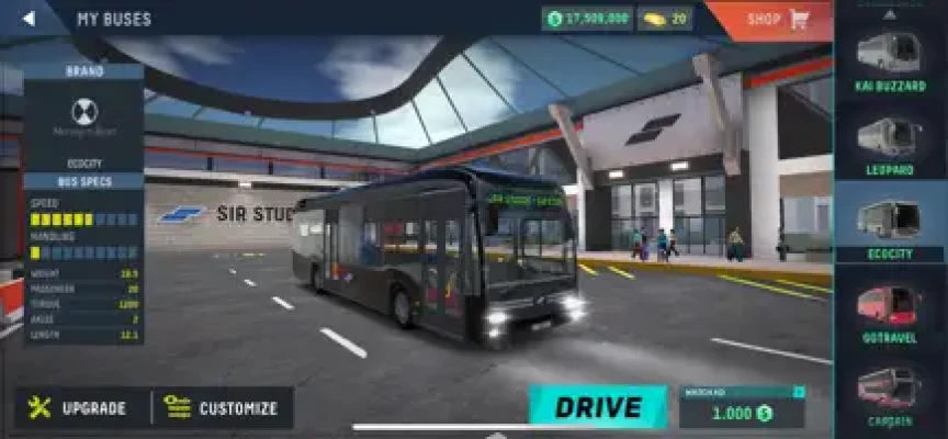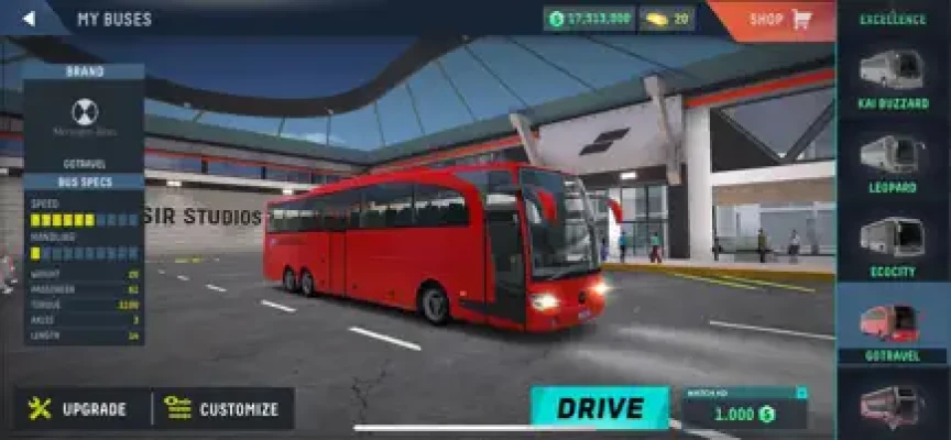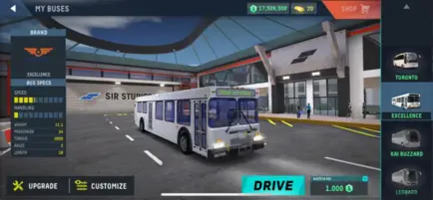 Select a bus model from a wide range of different bus models and brands or design your own bus at our customization garage, modify it, paint and unleash your inner artist. You can create a masterpiece with the provided countless customization options of vinyls, rims, platings and paint to create your dream bus for the driving arena.