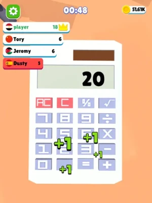Challenge your friends and family to see who can tap the fastest on the calculator. Make sure you don't click any numbers, only the equal sign. The Person with the highest number wins. Compare your score in the leaderboards with other players!