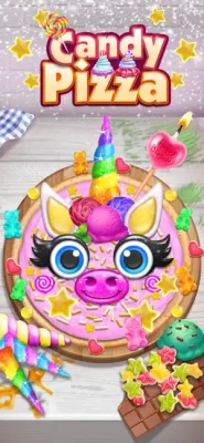 Watch your Pizza bake and remove at 500 degrees. Place Pizza on pan and Select a Glaze from Cherry to Vanilla. Get ready to Decorate your Candy Pizza with tons of Sweet Candy and Fun Sprinkles & Unicorn Faces!