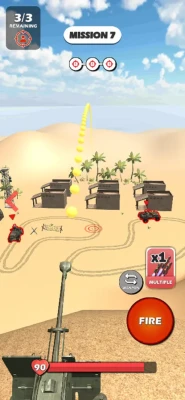 Use artillery to destroy enemy vehicles. Choose your best weapon ! Aim and shoot war vehicles. Explosive barrels can help you !