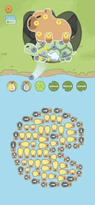 Color-Matching Mechanics: Match capybara car colors with pins to unlock them and free up the road.