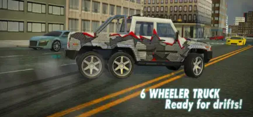 Choose the traction type that you like: front wheel drive (FWD), rear wheel drive (RWD) or all-wheel-drive (AWD) and take the cars off-road for an excitement ride. Off-road cars and pickups for driving on hills and to simulate 4x4 traction are available. You can even drive/drift with a 6 wheeler truck!