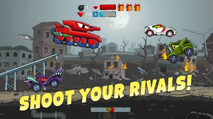 Do you enjoy physics based driving games? What about extreme car driving simulators or offroad games with cars and 4x4 monster trucks? Do you know any mad racing games with upgrades? If you like racing arcade games and road wars with the possibility to upgrade cars, you will love our legendary Car Eats Car game! Start the engine, step on the gas, and let’s go! Mobile action game app about death truck racing.