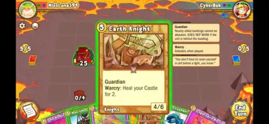 Collectible cards spring to life in this wacky Tactical CCG. Build a deck to challenge your friends and rivals, and engage in glorious CARD BATTLES! Will you choose fearsome vikings, or the deadly squirrels?