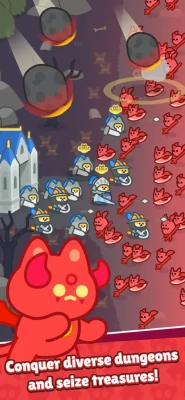 Prepare to conquer the world with your very own civilization of cats! ▶ Become Stronger with Rare Artifact Collection! Collect various artifacts with unique abilities, and experience the joy of collecting and watching your feline friends grow stronger! ▶ Your Personal Skill Combination for Victory! Create a winning strategy by combining innovative skills to overwhelm your enemies. Unique skills will transform ordinary cats into legendary warriors! ▶ A Unique Growth Lab! Research your powerful techniques and maximize the potential of your cat warriors! Continuous research allows you to experience an ever-advancing civilization. ▶ Exciting Dungeon Conquests! Defeat monsters escaped from the lab and demons from hell to conquer dungeons and discover new treasures!