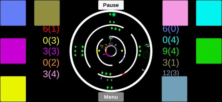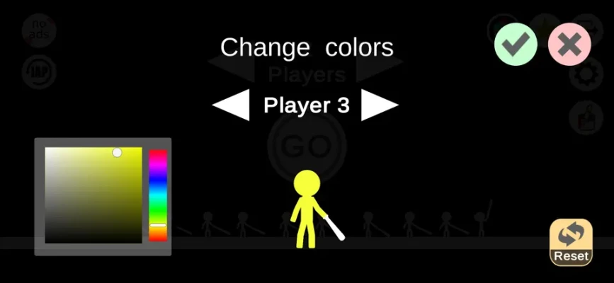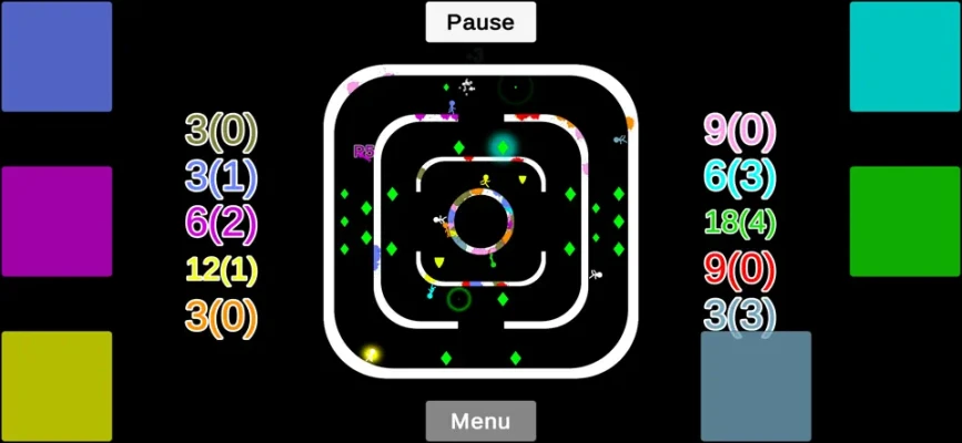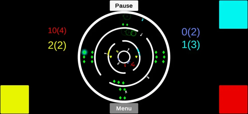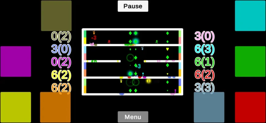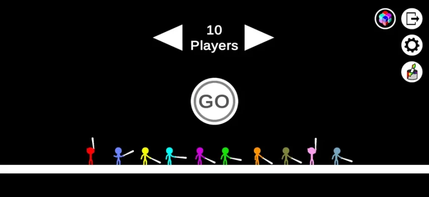 The controls in this party game are easy. Use your button to switch the gravity for your stick figure. Collect green crystals to speed up your stick figure and catch your opponents. Once catched, knock them out with your baseball bat. But do not get caught from behind or you will get knocked out instead. In the center of the map are shields located. Stick figures who are shielded can not be knocked out. Once shielded, wait for other players to overtake you and knock them out.