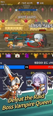 Idle infinite PVP game!! Welcome to League of Heroes. Become a summoner and create your own hero party, Develop the strongest hero party through endless battles! ▶ League match - Infinite battle with randomly matched monster/hero parties! Challenge yourself to a higher league! ▶ Dungeon - Defeat fearsome dungeon bosses and obtain various goods! ▶ Raid - We are looking for people to join us for the Vampire Queen Raid! ▶ Defensive battle - Defend the village from the invasion of the monster army! ▶ Underground Labyrinth - Explore the underground labyrinth and obtain treasure!