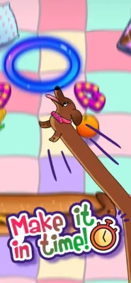 2. On the way to the finish, collect food to increase the stretch of the dog;