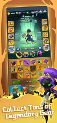 Turn on idle mode to earn gold and unlock chests to collect over 2000 different pieces of gear and legendary sets for you to choose from!