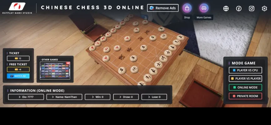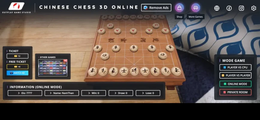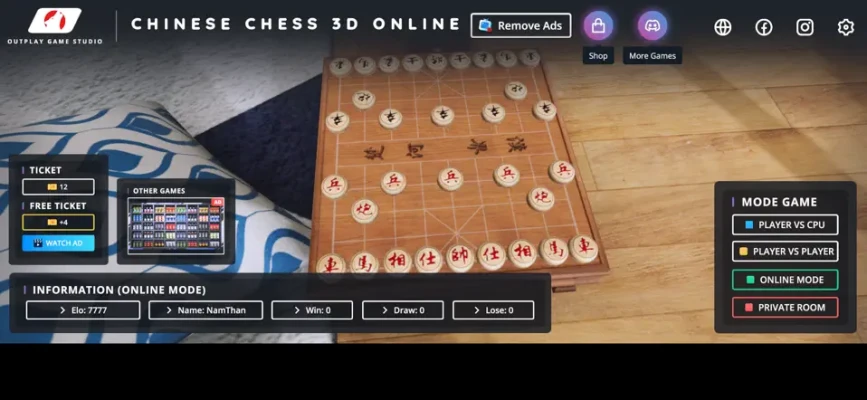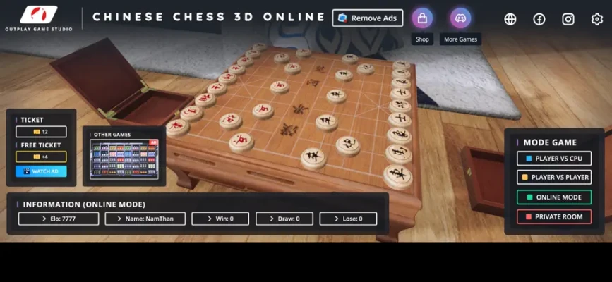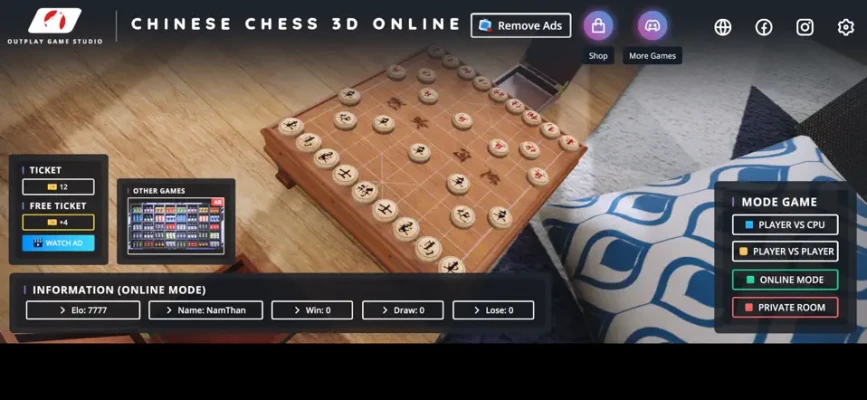 Xiangqi Chinese Chess 3D Online is an online 3D casual board intelligence chess game. You can play online with strangers and offline with your computer or friends. Good luck and have fun!