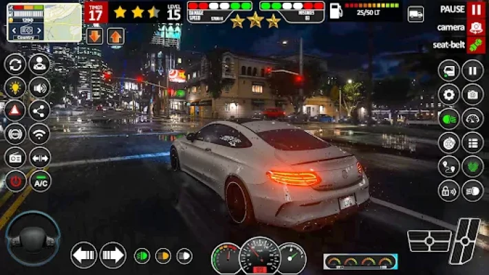 Driving School Mode: Perfect for beginners and those looking to improve their driving skills in real car driving games. Car Driving School 3D Mode provides a structured learning experience that covers essential driving techniques and maneuvers in driving academy : city car game offline. From basic controls like steering and acceleration to advanced skills like drifting and defensive driving in car driver 3d driving class. Players can progress through a series of lessons and challenges to become masterful drivers in indian car simulator game.