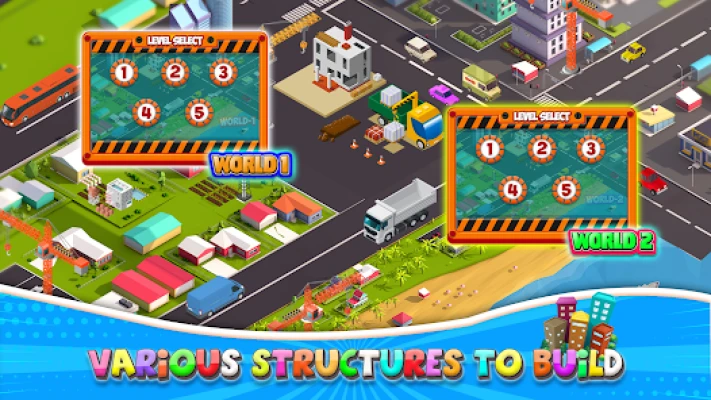 Get ready to build amusement parks, train stations, and large villas. Bulldozers of construction simulators can crush stones and mega cranes have the power to cut rocks. Have fun while digging the soil of City Construction Building Games. Use welding tools to pave town roads and bridges. Builder truck games for boys and girls allow lifting heavy construction materials. Play the role of city building constructor and contractor to build houses and roads with extreme trucks. Enjoy this city builder game to unveil the construction procedures and tricks.