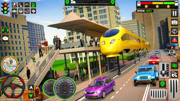 Gyroscopic modern train simulator has multiple levels where you need to pick and drop passengers safely driving train carefully. The next task is to park train properly on the pinned locations for passengers. Gyroscopic simulator train games has impossible tracks where high speed can cause turbulence in the train. Train racing on railway tracks is very exciting with gyroscopic train simulator train games. Driving passengers to their destinations and unlock more exciting gyroscopic trains in future train driving simulator driving games. Gyroscopic train city driving has a tricky parking aslo, where you parking skills will be tested. This train driving sim is different from other driving games and has a unique interesting gyroscopic gameplay. Take your metro train throughout the city and drive above the traffic in the city. There is no fear of smashing into the traffic as if you are driving above the traffic.