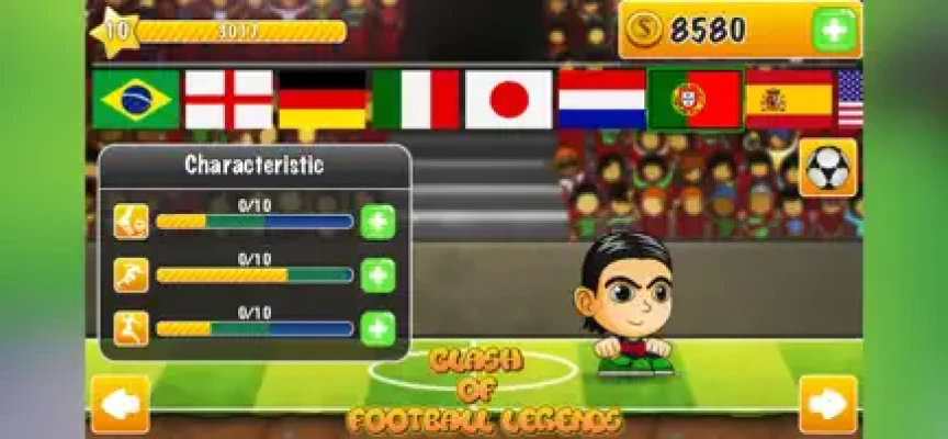 Game Clash of Football Legends 2017 allows you not only to enjoy playing, but also teach you to build strategies for winning a football match. For a more effective game, train the player's skills. Each player has unique characteristics, choose yourself the right one. You like to be always faster than others, then choose a player who can run fast. To be a good goalkeeper, you need to be able to jump, there is such a character. If you like to score goals from a distance, then look for a player with a well-trained shot.