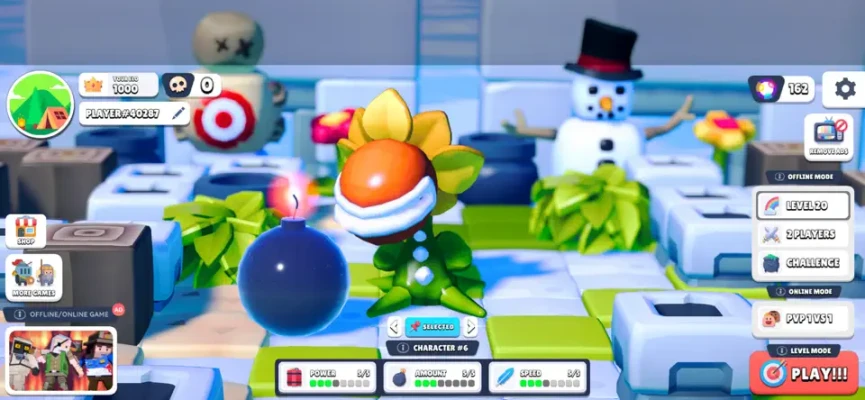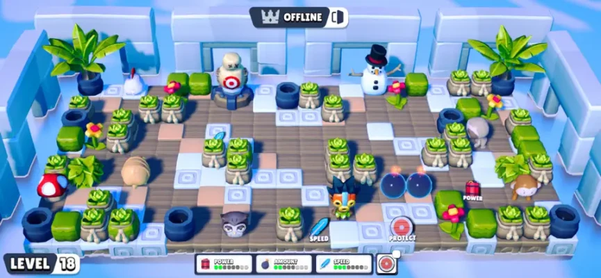 If you like classic bomb games and love cute characters, so Classic Bomber Online is game for you. The game is very simple, you will move and place bombs everywhere to catch the animals. When all the animals are caught by you, you are the winner. However, the animals are not as easy as you think, they will probably run very fast and find a way to crash straight into you. You need to strategically place bombs to catch all the animals. Just be not careful, the loser will be you. You can also compete with others through Online mode, whoever finishes first will be the winner. Good luck and have fun!