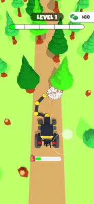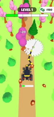 Cut All Trees! Cut trees, break rocks to clear your way! Move vehicle's tool with joystick! Make vehicle move forward!