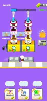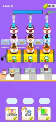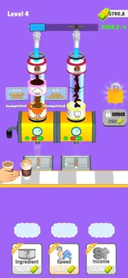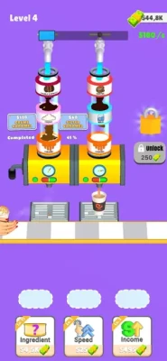 Add ingredient to get coffee, milk or sugar, Sort them to get a coffee, Sell and get new ingredients to have unique coffee recipes!