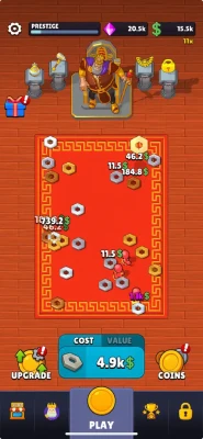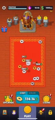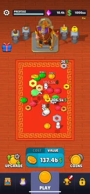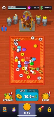 MERGE, UPGRADE, AND PROSPER True masters know how to invest. Use your earnings to upgrade the items your workers collect. Watch them merge and evolve from simple nuts and bolts into sparkling gems, golden treasures, and beyond. Each new item has a higher value, increasing your earnings exponentially. Upgrade your workers, improve your shop, and make your king proud! REACH PRESTIGE STATUS Grow your empire big enough to fill your prestige bar. Once you reach the top, you can prestige to reset your game for massive permanent bonuses and powerful multipliers. Each prestige brings you closer to becoming the ultimate tycoon. FEATURES: - Simple and addictive idle clicker gameplay. - A satisfying merge mechanic to evolve items and increase their value. - Hire and upgrade a team of workers for automated idle income. - A deep upgrade system for your items, workers, and bonuses. - A powerful prestige system for endless replayability and growth. - A fun and colorful art style with a royal king theme. Are you ready to flip your way to riches and build the most valuable collection the world has ever seen? Download Coin Flip Master now and start your idle empire today!