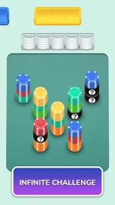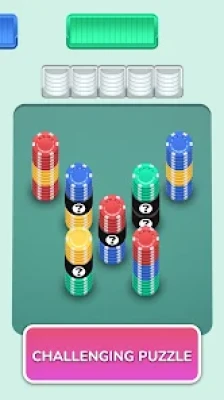 📌Take control of the stacked poker chip piles and strategically place them into the matching colored containers. As you progress, you'll encounter increasingly challenging levels that test your skills and strategic thinking. With each precise stack, watch your collection of poker chips grow, feeling the excitement of a high-stakes poker game.