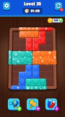 - Slide to move the colored blocks across the board.