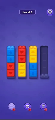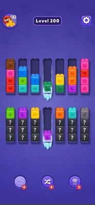 Your goal is to pour the blocks from one bottle to another until each bottle contains only one color. Simple at first, but as the levels progress, the puzzles become more complex, and you’ll need to think strategically to sort the blocks efficiently. With limited moves and an increasing number of bottles and colors, every decision counts! The gameplay is easy to learn, with intuitive tap controls: simply tap on a bottle to pick up blocks and tap on another bottle to pour them in. But be careful—planning your moves is essential as you can't undo them! The key to success is thinking ahead and using your moves wisely. With its beautiful, vibrant colors and smooth animations, Colorful Sort is visually appealing and satisfying to play. Its minimalist design allows you to focus on the puzzle-solving experience without distractions. Plus, with hundreds of levels to play through, there’s always a new challenge around the corner. Perfect for players of all ages, Colorful Sort combines the simplicity of color sorting with the complexity of challenging puzzles. Whether you’re playing for a few minutes or hours, you'll find yourself immersed in the soothing yet engaging gameplay. Dive into Colorful Sort today and see how many levels you can master. Can you organize all the blocks and become the ultimate sorting champion?