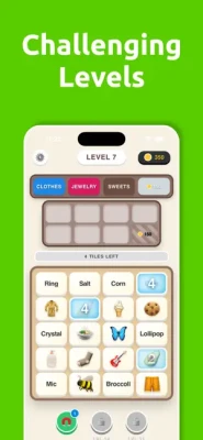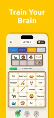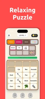 The game offers a peaceful, "no-pressure" environment where players sort through a grid of tiles. Each tile contains a word, and the objective is to tap and connect those that belong to the same category. Themes range from straightforward topics like "Colors" and "Animals" to more complex subjects like "Space," "History," and "Science." It is specifically designed as a low-stress mental workout for adults and seniors looking to sharpen their memory and concentration.