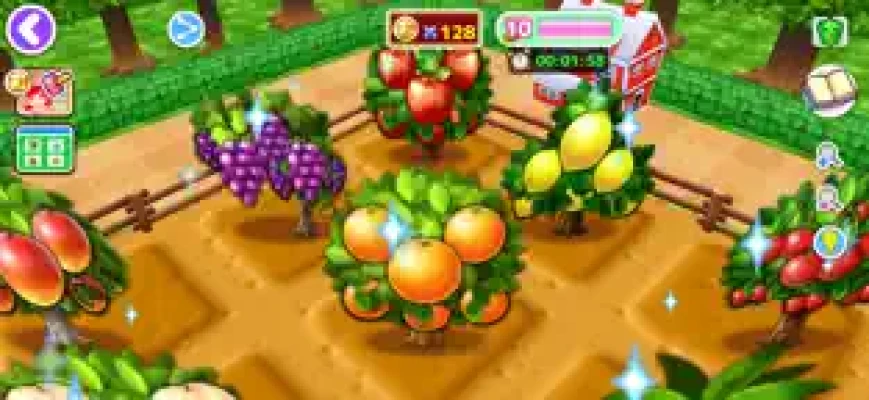 Harvest lots of things by going Fishing, growing plants in the Fields, and raising animals in your Ranch.